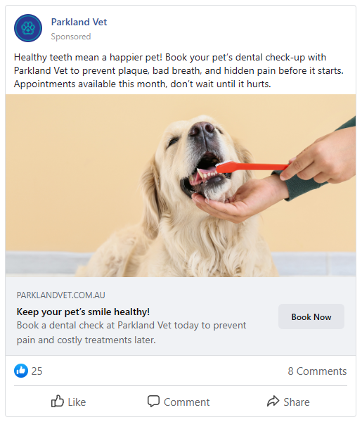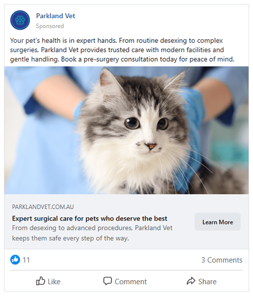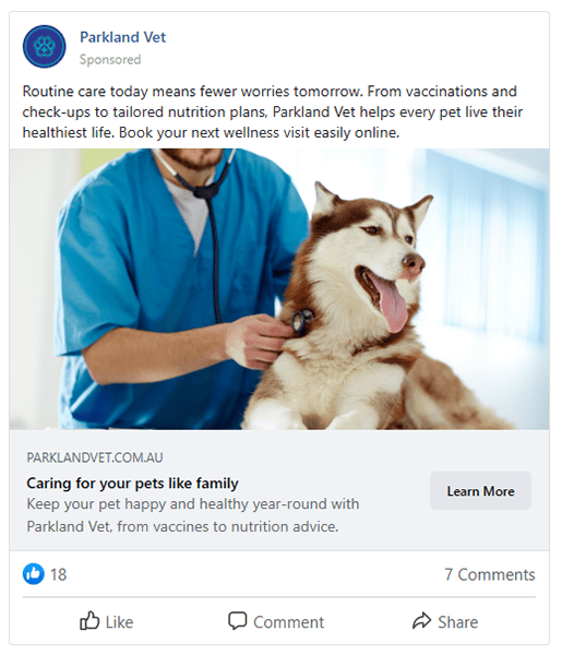 With real-time insights, precise local targeting and scalable budgets, Facebook Ads give veterinary clinics the tools to stay visible, relevant and connected with today’s pet owners.